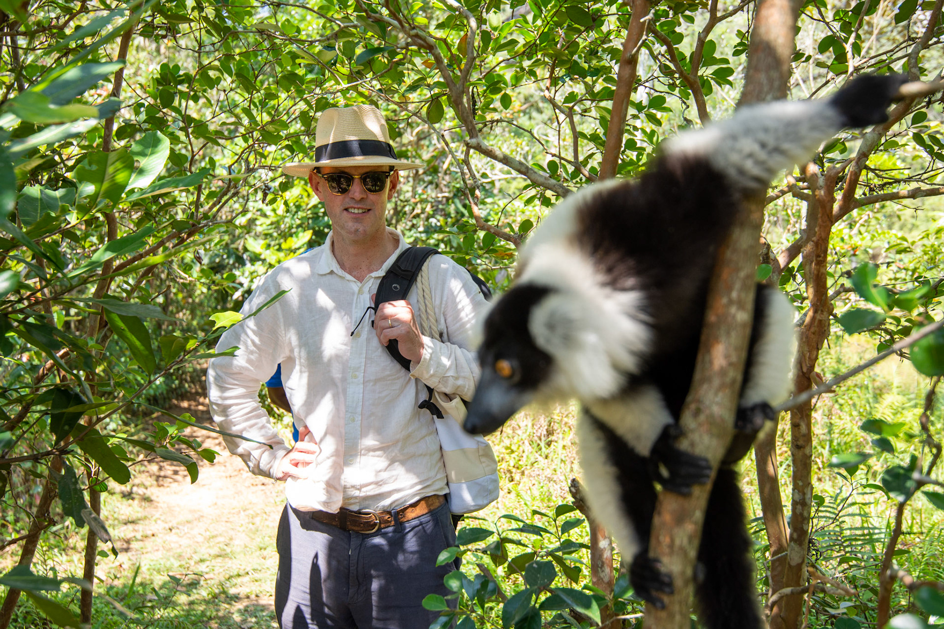 A dancing white lemur in Kirindy Forest